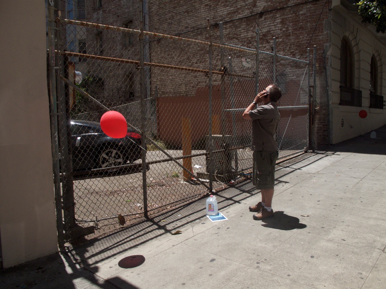 Red balloons marked the spots on the street where each story was “embedded,” and signs at those spots gave you a phone number to call. Each number you called took you to a different short story about what you were looking at. (The phone numbers and audio message system were generously donated by MobileCommons. Thanks to Jed and Michael who made this tour possible!) It was as if ghosts from the street’s past, present and future history were talking to you over the phone lines. Magic….